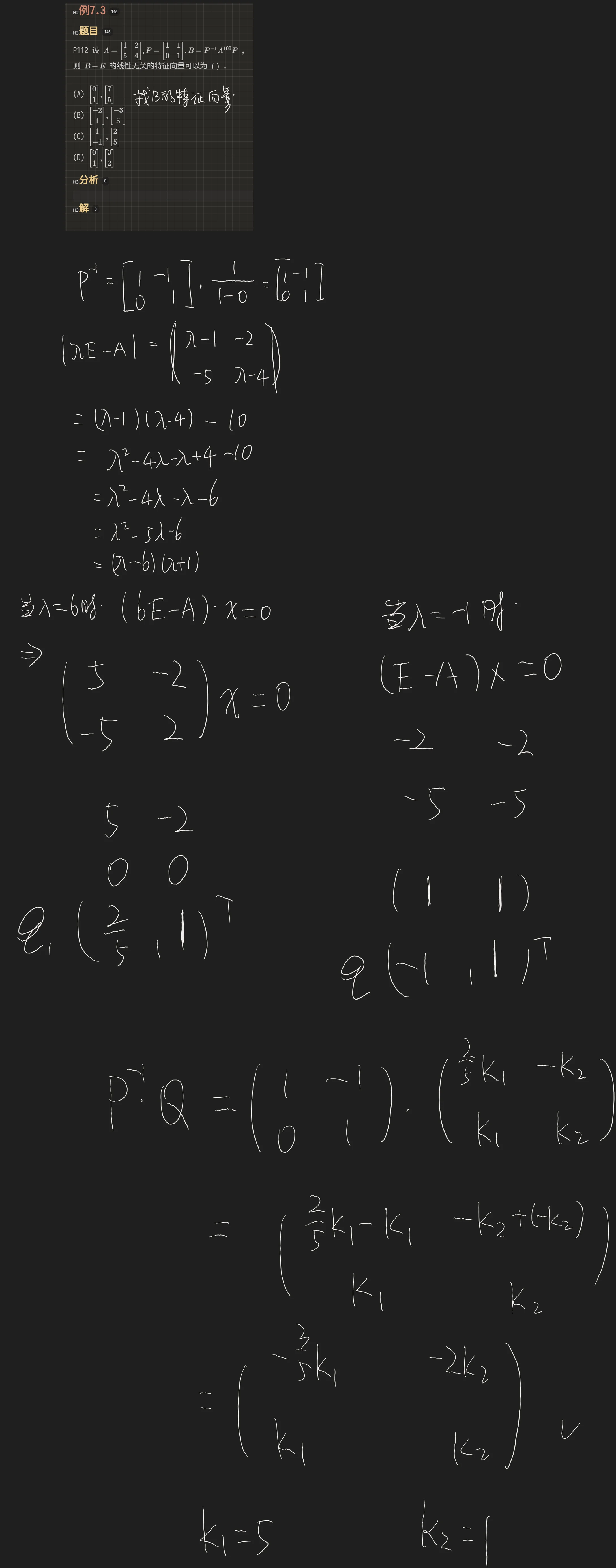 Q:P112 设 ,则 的线性无关的特征向量可以为 ( ) .