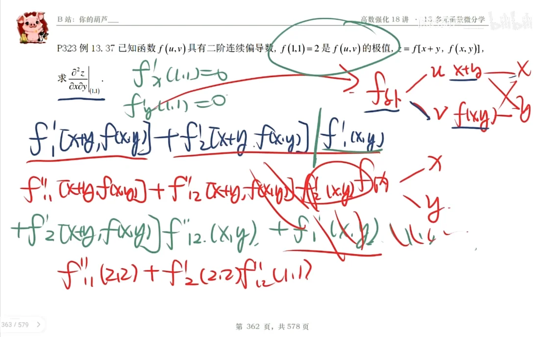 A:算偏导数的重点题,这里的是显化的给出的,所以就不要写成1和2了,一路带着这俩算,不然要算错!