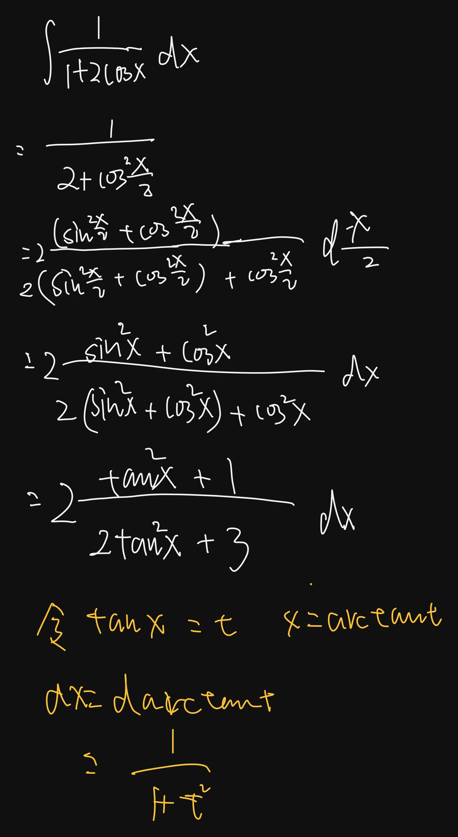 例9.20 题目 Q:P223 求不定积分 . 分析 A:没必要把上面的1打开,上下全部齐次为tan,可以上面保留cos的平方,凑微分就是tan 解 令 ,则 ,所以 【注】若不符合全角换元的情形, 只好使出最后一招, 即