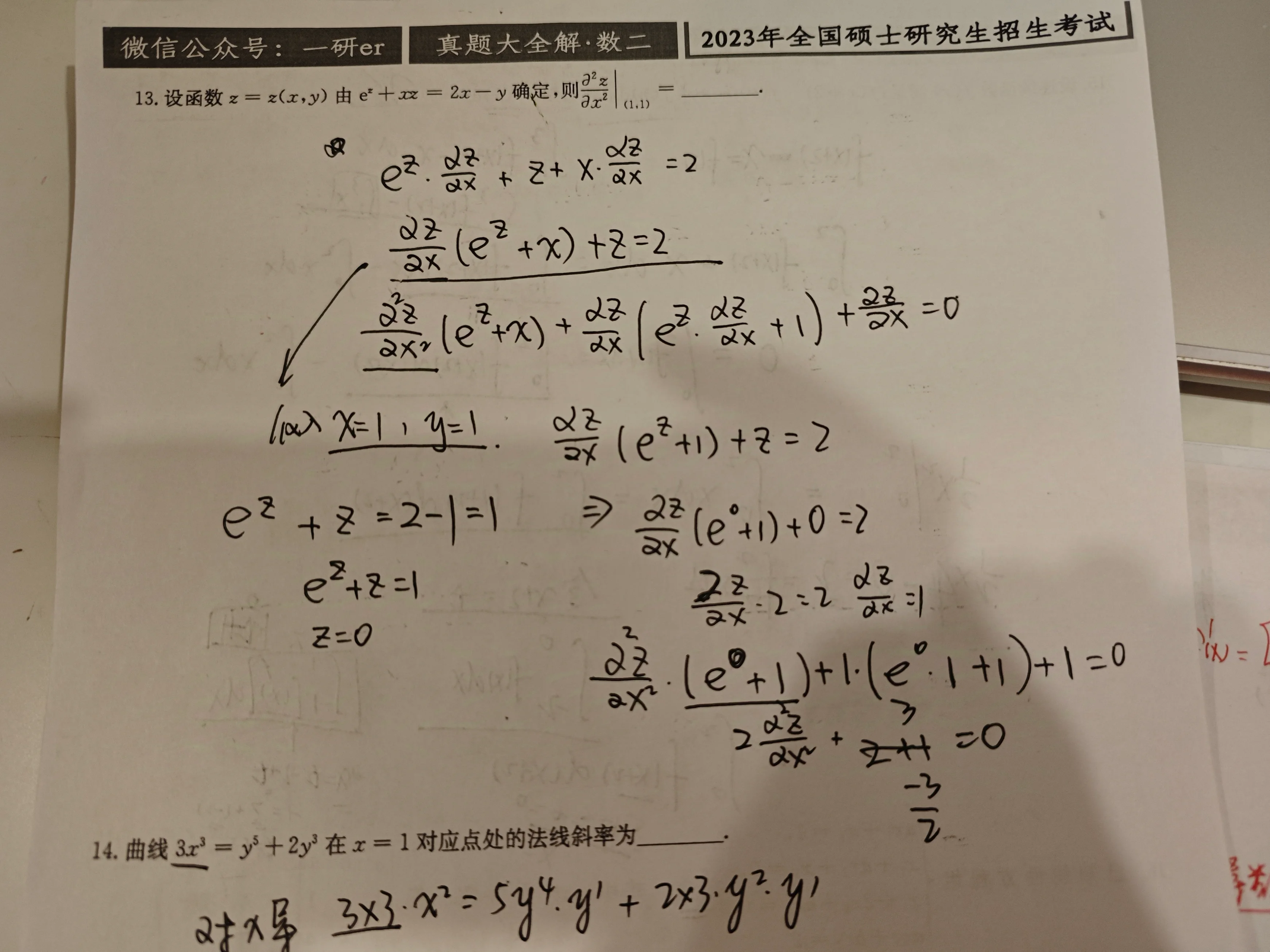 对方程 两端关于 求偏导数,可得