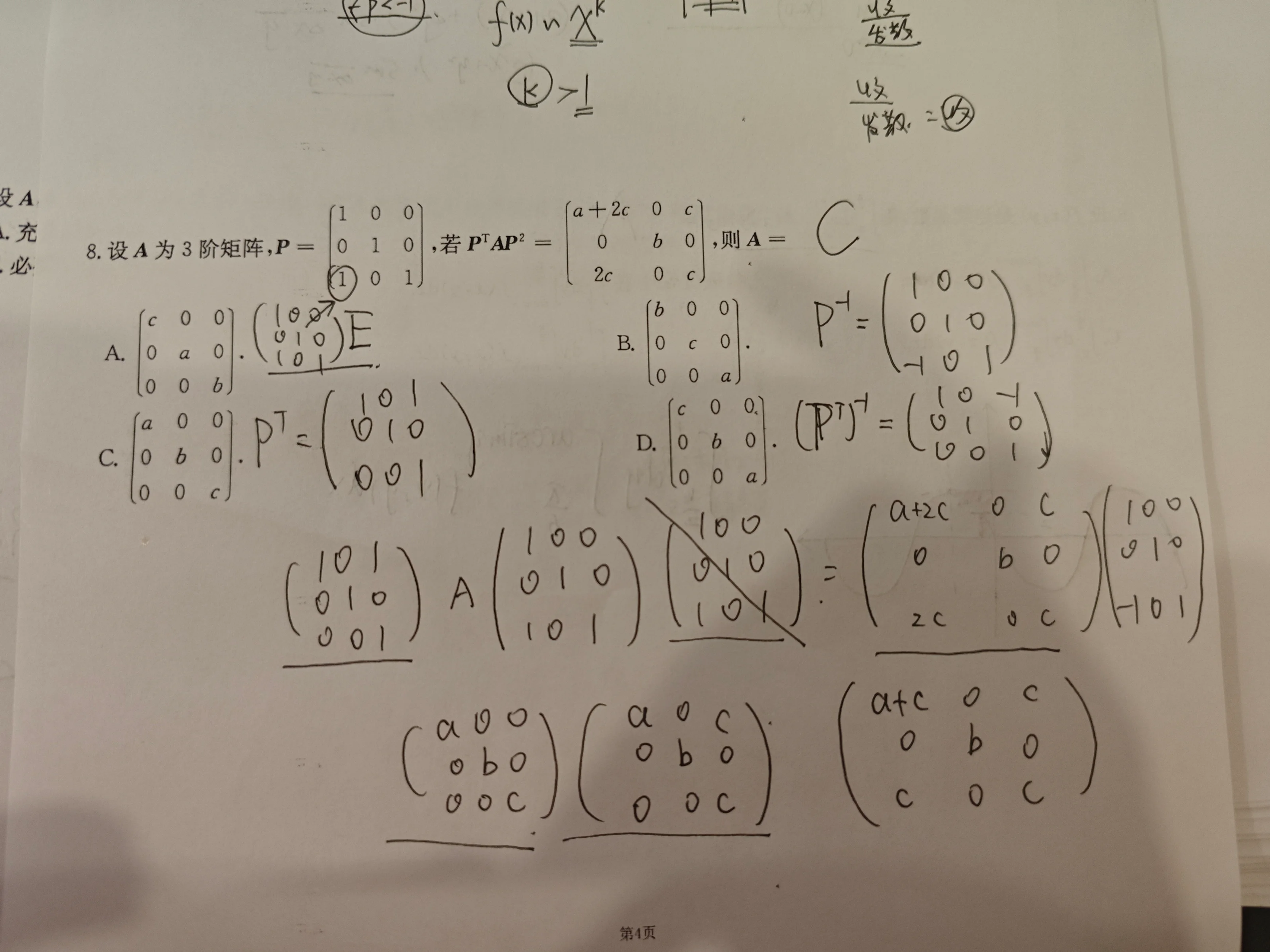 为三阶矩阵,,若,则矩阵为( )