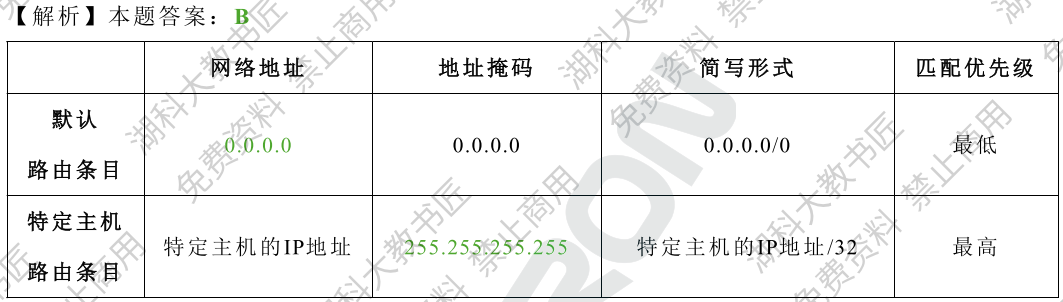 默认路由的网络地址应该是0.0.0.0,特定的主机地址掩码最多可以32位全匹配