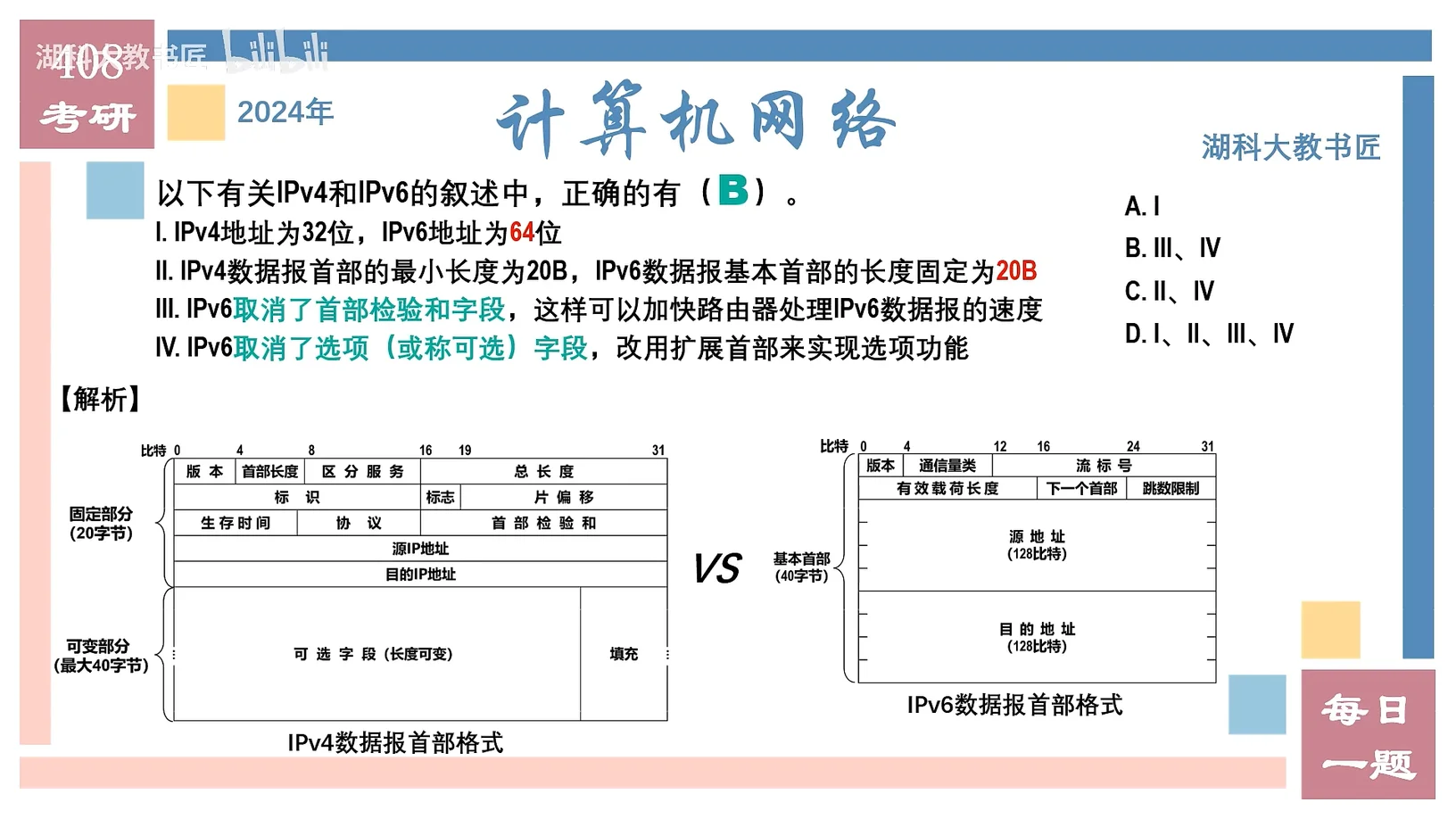 III.Pv6取消了首部检验和字段,这样可以加快路由器处理IPv6数据报的速度