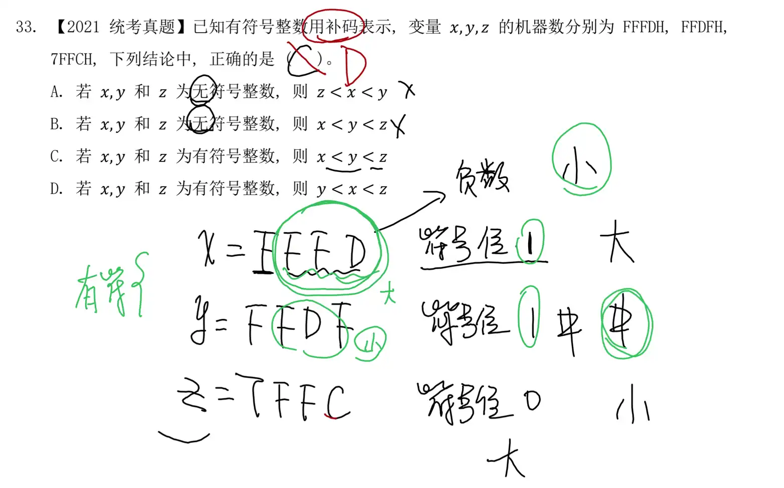 Q:【2021 统考真题】已知有符号整数用补码表示,变量 的机器数分别为 FFFDH, FFDFH, 7FFCH, 下列结论中, 正确的是 ( )。
