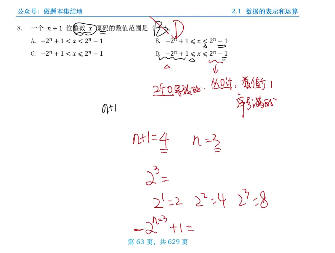 Q:一个 位整数 原码的数值范围是 ( ) 。
