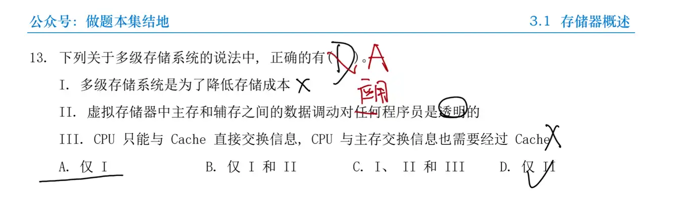 Q:下列关于多级存储系统的说法中, 正确的有 ( )。