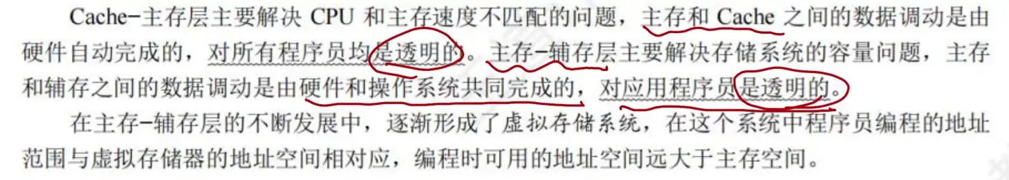 A:主存和辅存之间的数据调动是由硬件和操作系统共同完成的, 仅对应用级程序员透明。CPU 与主存可直接交换信息。
