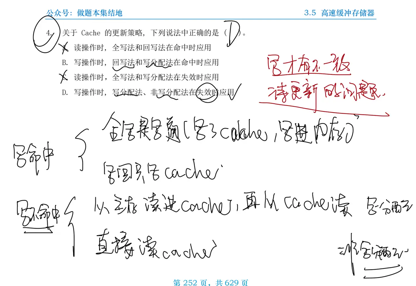 Q:关于 Cache 的更新策略, 下列说法中正确的是 ( )。