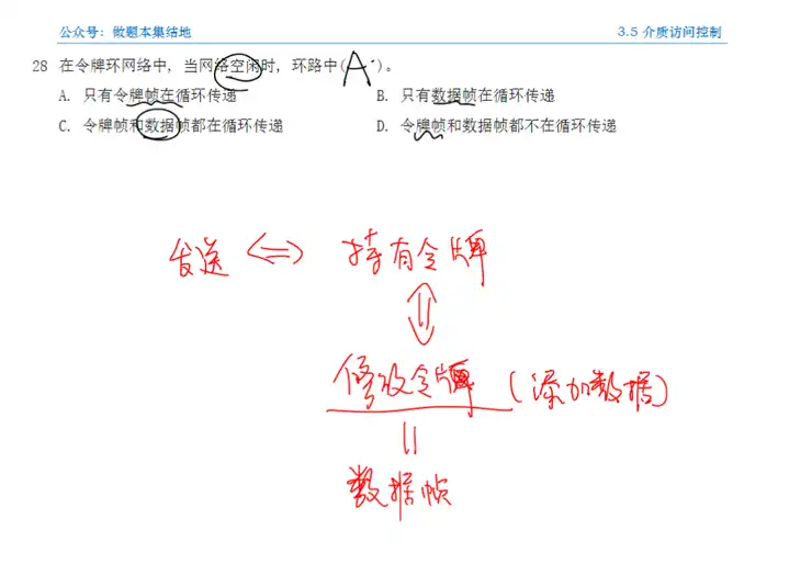 A: 当网络空闲时,环路中只有令牌帧在循环传递。