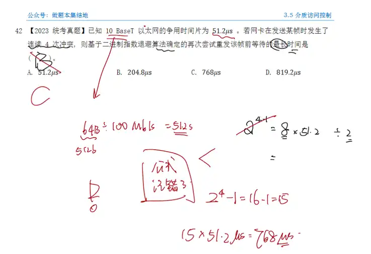 A:截断二进制指数退避算法的公式记错了