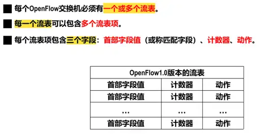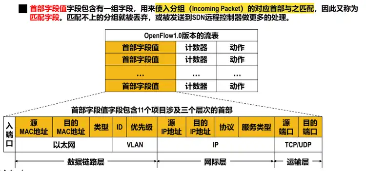 A: 用于匹配入分组的首部,匹配不上的分组会被丢弃或发送到控制器处理。
