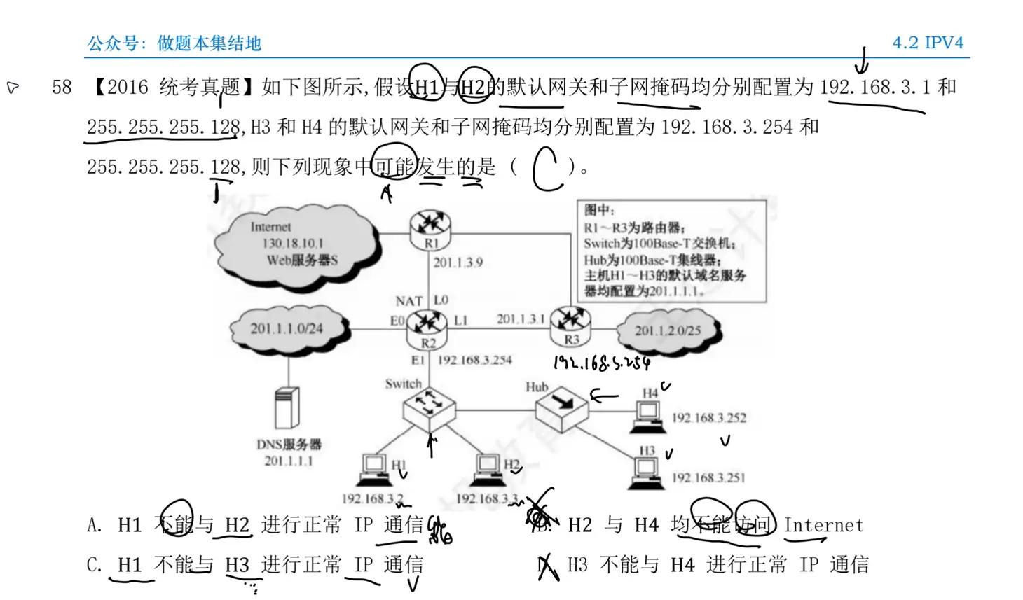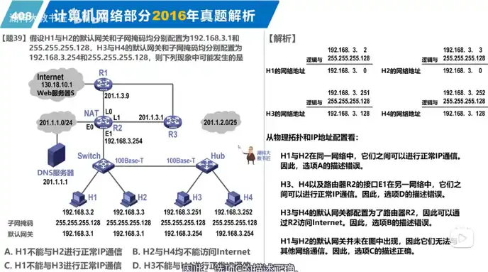 Q:【2016 统考真题】如下图所示, 假设H1与H2的默认网关和子网掩码均分别配置为 192.168. 3. 1 和 255. 255. 255. 128, H3 和 H4 的默认网关和子网掩码均分别配置为192.168. 3. 254 和 255. 255. 255. 128, 则下列现象中可能发生的是( )。
