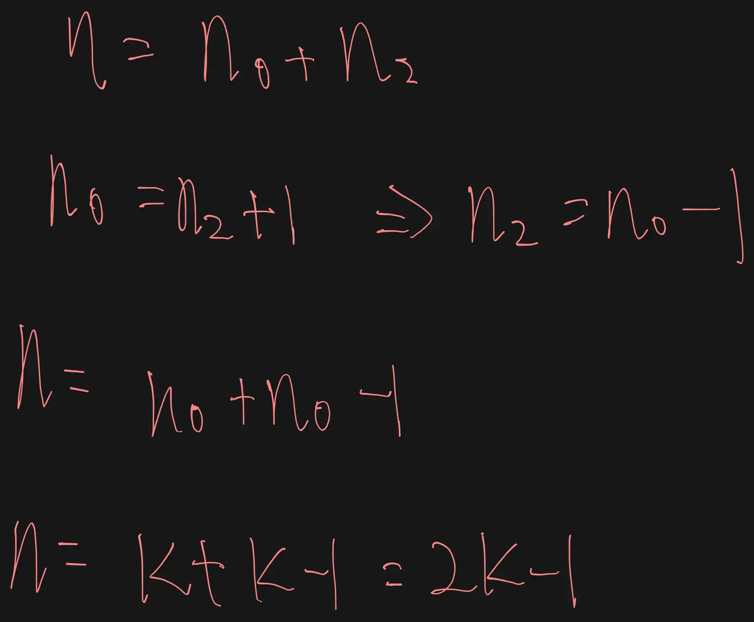 非叶结点的度均为 2 , 且所有叶结点都位于同一层的完全二叉树就是满二叉树。对于一棵高度为 的满二叉树 (空树 ),其最后一层全部是叶结点,数目为 ; 总结点数为 。因此当 时,可以得到