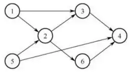 题37 题目 【2018 统考真题】下列选项中, 不是如下有向图的拓扑序列的是 ( ). A. 1,5,2,3,6,4 B. C. D. 分析 拓扑排序每次选取入度为 0 的结点输出, 经观察不难发现拓扑序列前两位一定是 1,5 或 5,1 (因为只有 1 和 5 的入度均为 0, 且其他结点都不满足仅有 1 或仅有 5 作为前驱)。 解 D