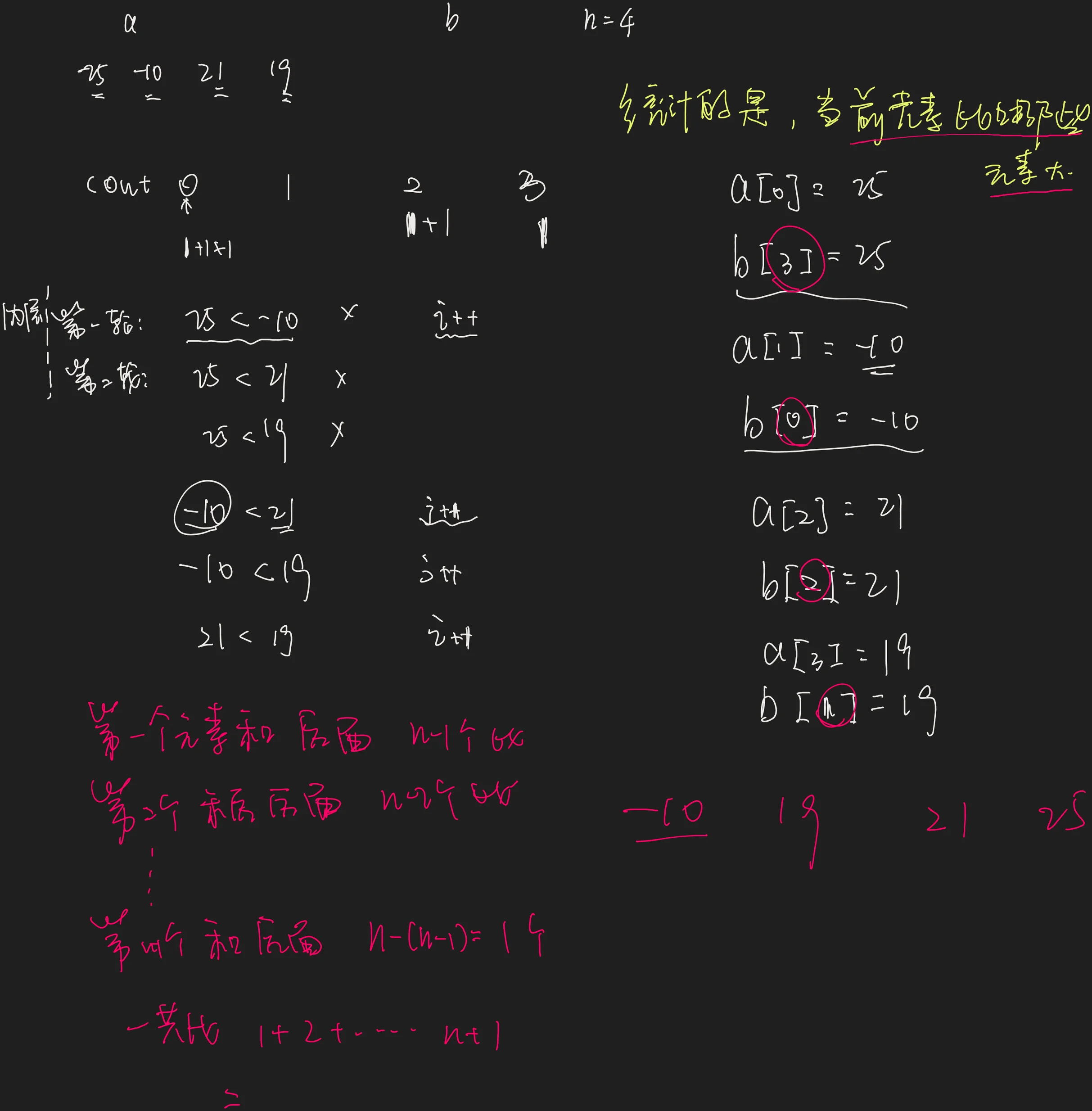 2. a 中含有 n 个元素,则算法执行过程中,元素之间的比较次数是多少?