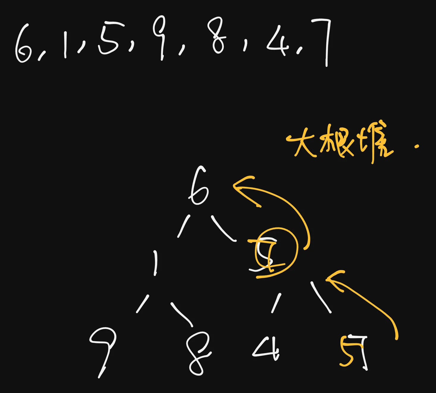 要熟练掌握建堆和调整堆的方法, 从序列末尾开始向前遍历, 变换过程如下图所示。