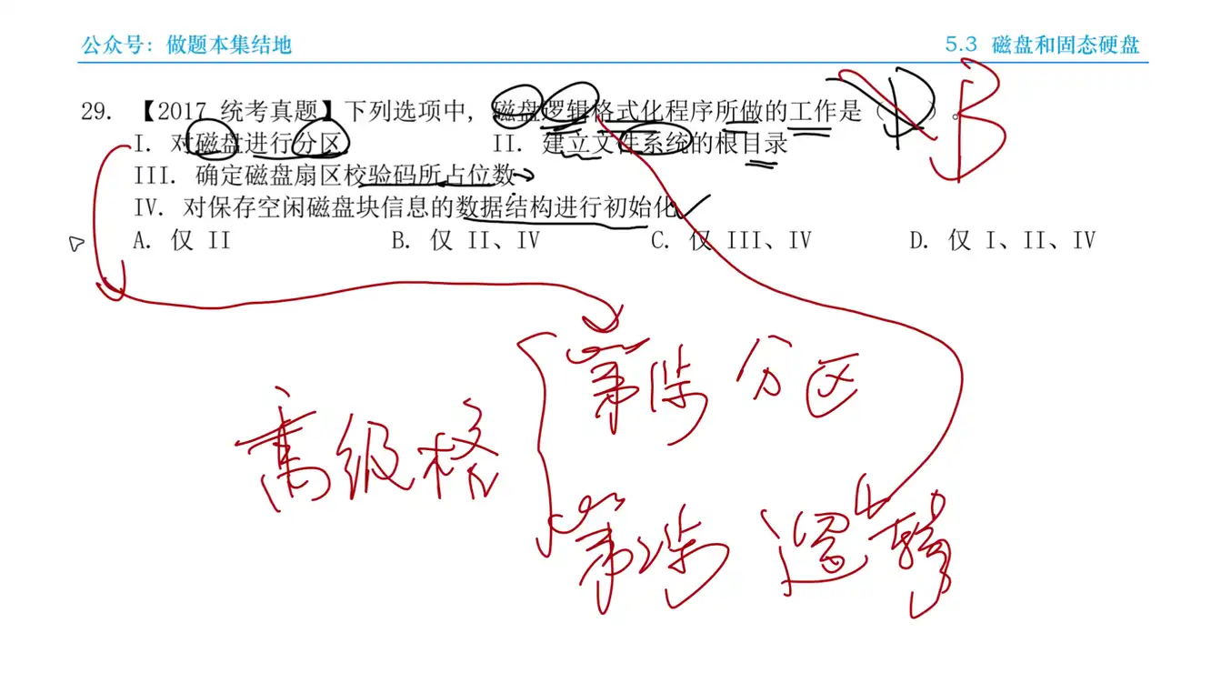 Q:【2017 统考真题】下列选项中,磁盘逻辑格式化程序所做的工作是( )。