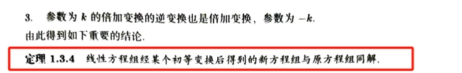 定理 1.3.4 线性方程组经某个初等变换后得到的新方程组与原方程组同解。