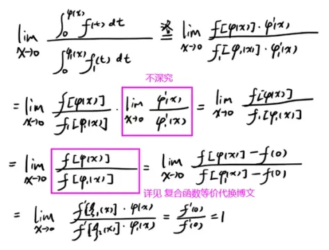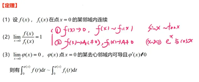 Q:什么条件下可以对变上限积分进行等价无穷小的代换? A: 设 , 在点 的某邻域内连续 , 点的某去心邻域内可导且 则有dd 张宇强化书上也有写,复合函数与变上限积分型 一、被积函数的替换 二、被积函数与积分限同时替换 变限积分中的等价无穷小替换_哔哩哔哩_bilibili