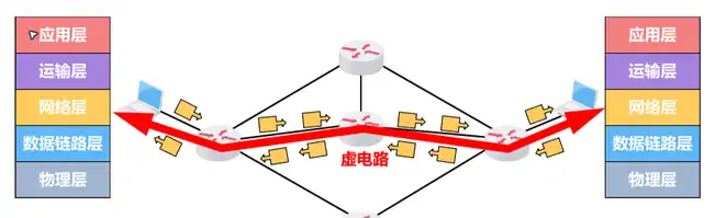 - 分组的首部仅在连接建立阶段使用完整的目的主机地址,之后每个分组的首部只需要携带一条虚电路编号即可。