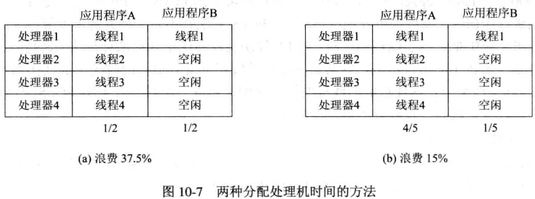 这种方式看起来极度浪费处理机时间, 若进程的一个线程被阻塞, 那么该线程的处理机将一直空闲. 但使用这种调度方式也有他的理由: