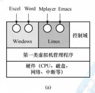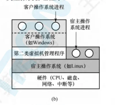 - 两类虚拟机(又称裸金属架构和寄居架构)