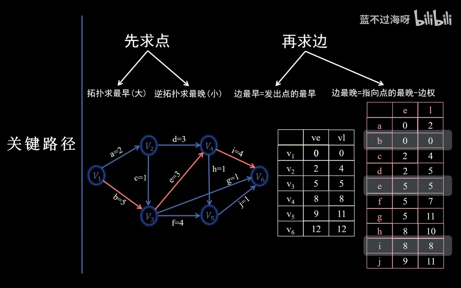 - 每个活动 ai 的最迟发生时间等于该活动终点的最迟发生时间减去该活动的持续时间(边权值),即
