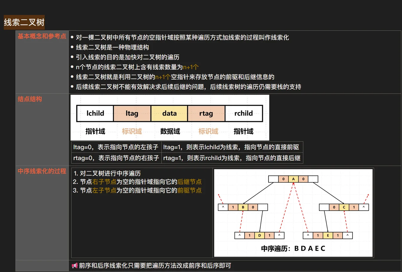 - 线索二叉树就是利用二叉树的n+1个空指针来存放节点的前驱和后继信息的