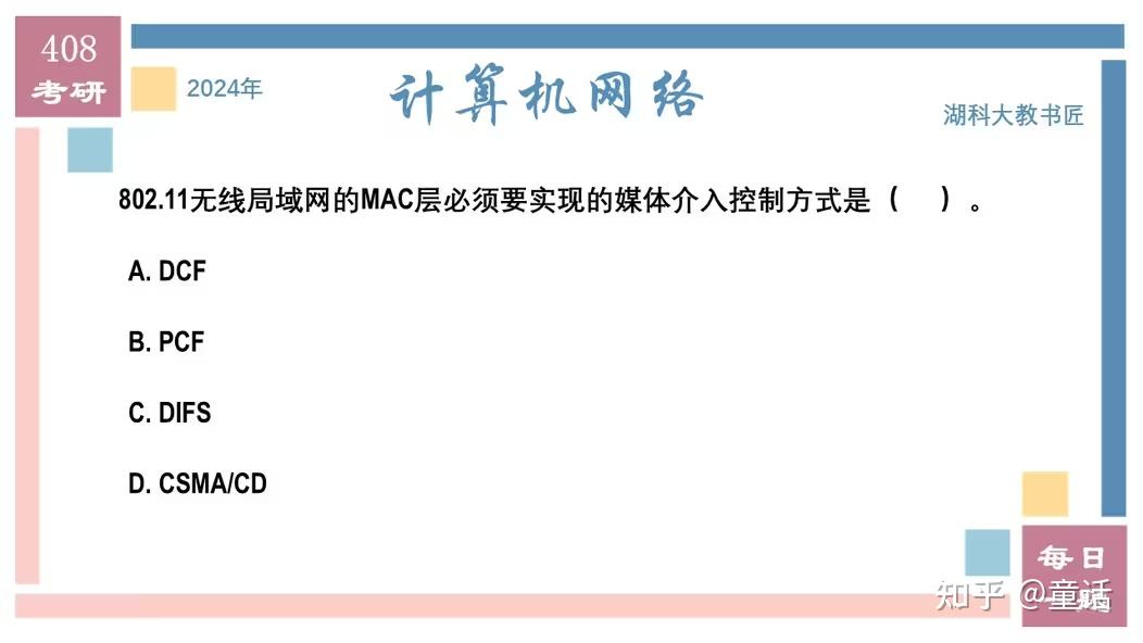 同上,无线局域网的 Mac 帧不需要帧定界符,是因为以太网使用的曼彻斯特编码,中间会有电压跳变,如果没有电压变化就说明帧结束了,不需要帧定界符。