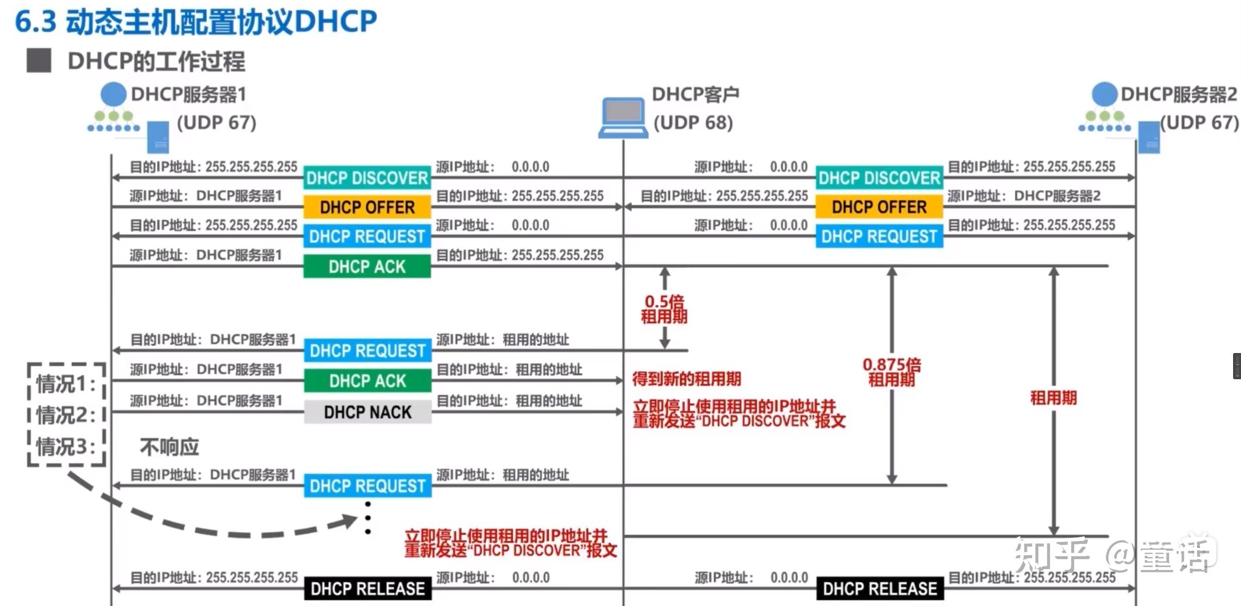 (2)除了基本的 DHCP 发现、提供、请求、确认报文,还有 DHCP 释放报文、DHCP 谢绝报文