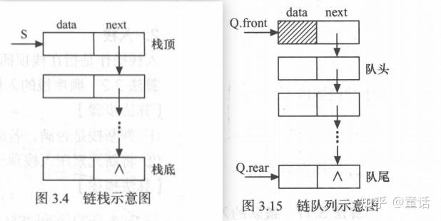 • 链式栈 / 队列不需要判断栈满 / 队列满,而是动态分配结点