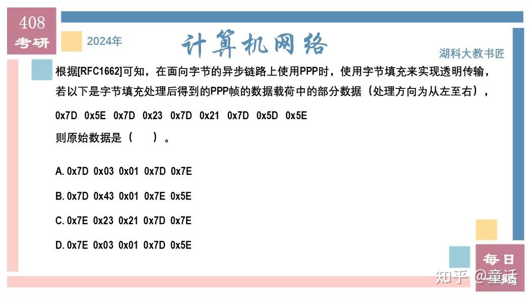 填充方法:**0x7D 后面的字节与 0x20 异或,**0x20 因为是 ASCll 码的空格,异或后不会跟控制字符冲突。