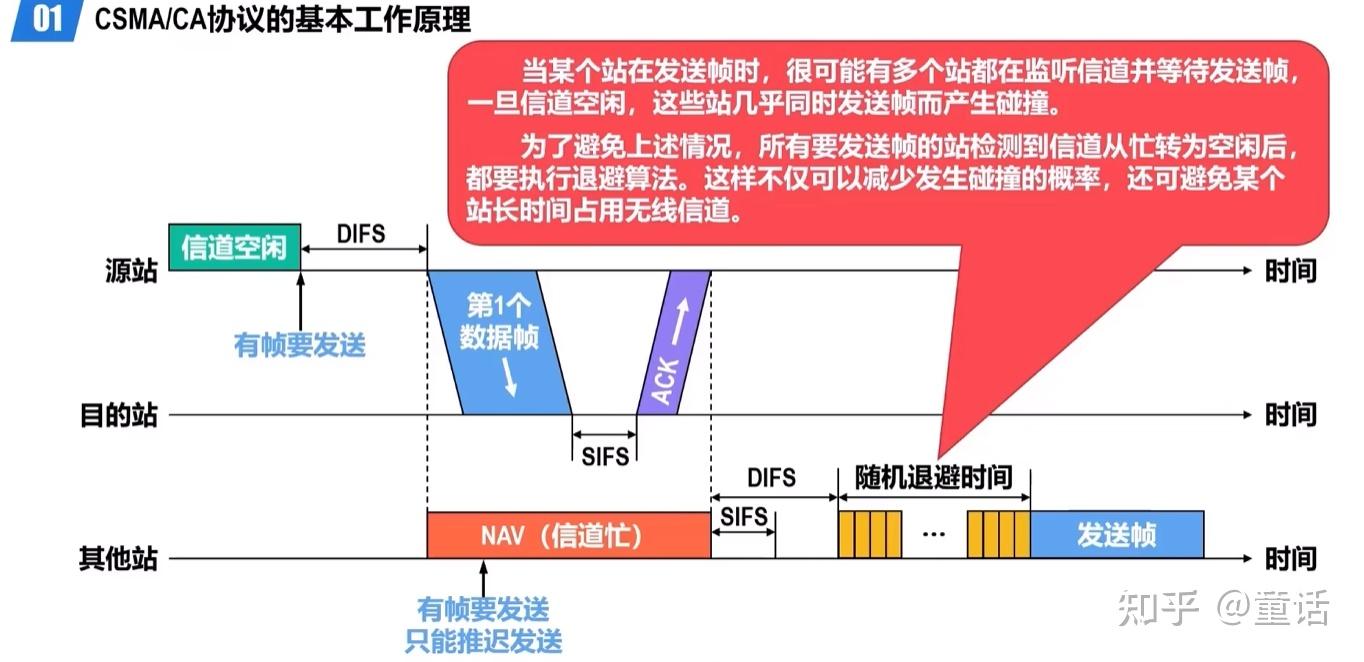(2)CSMA/CA 虽然叫碰撞避免,但是实际上是减少碰撞