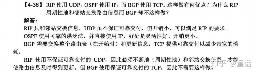 冷门点:不同协议选择不同方式的原因,注意 RIP 和 BGP 属于应用层协议
