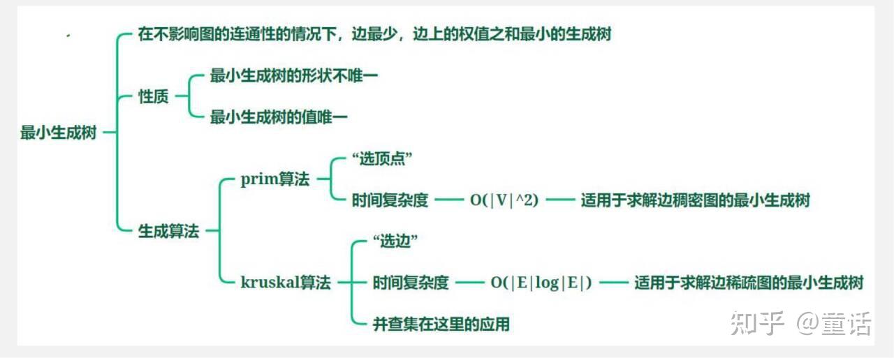 • 连通图的生成树: 一个极小连通子图,它含有图中全部顶点,但只有足以构成一棵树的 n-1 条边,这样的连通子图称为连通图的生成树。