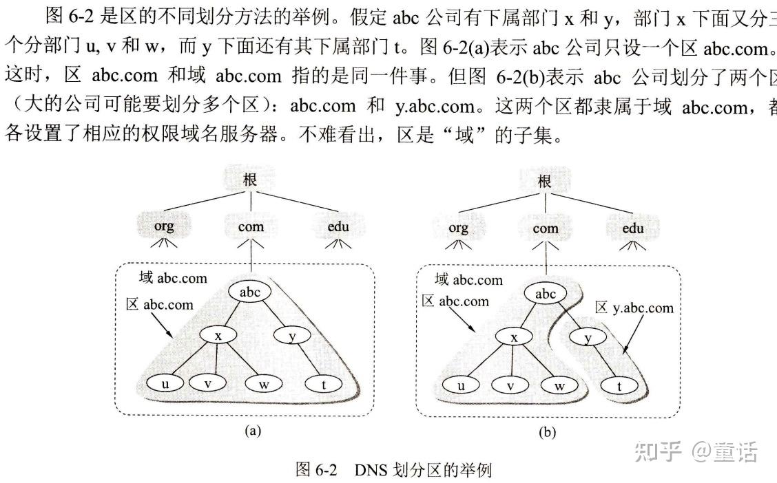 冷门点:DNS 服务器的管辖范围不是以 “域” 为单位,而是以 “区” 为单位的。区是 DNS 服务器实际管辖的范围。区可能等于或小于域,但一定不能大于域。
