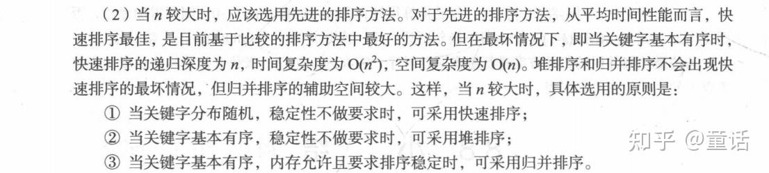 (1)归并排序可用于链式结构且不需要附加存储空间,但递归实现时仍需要开辟相应的递归工作栈。而用顺序表实现归并排序时,需要和待排序记录个数相等的辅助存储空间,所以空间复杂度为 O(n)。