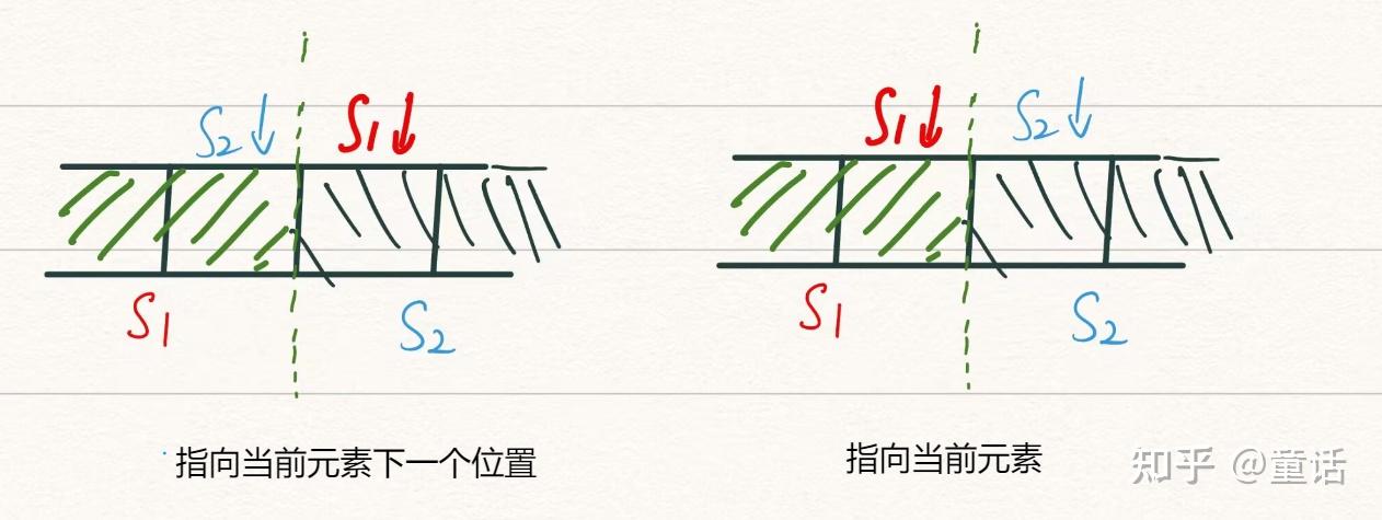 (1)都指向当前元素:栈满时 S2.top-S1.top==1
