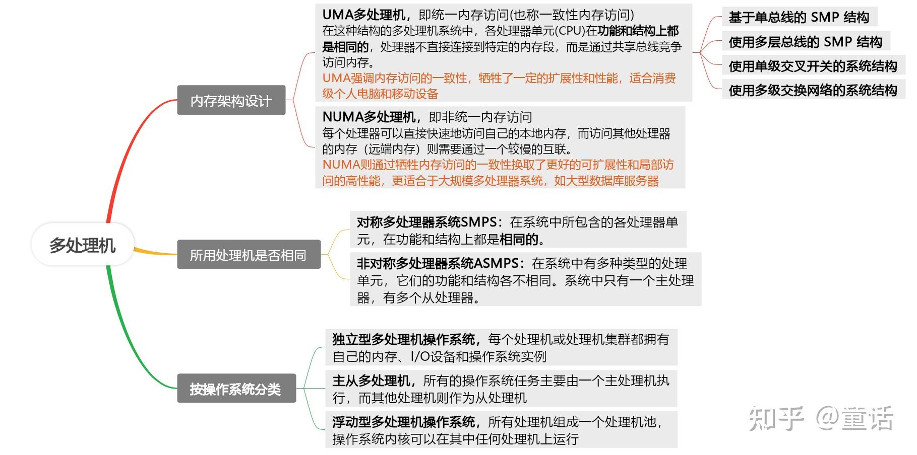 这部分内容主要参考了汤书和现代操作系统,内容可能会有所出入,《现代操作系统》将对称多处理机放入按操作系统分类中,但严格来讲这种分类应该是硬件分类,所以没放入