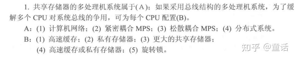 共享存储器的多处理机系统属于(A):如果采用总线结构的多处理机系统,为了缓解多个CPU对系统总线的争用,可为每个CPU配置(B)。