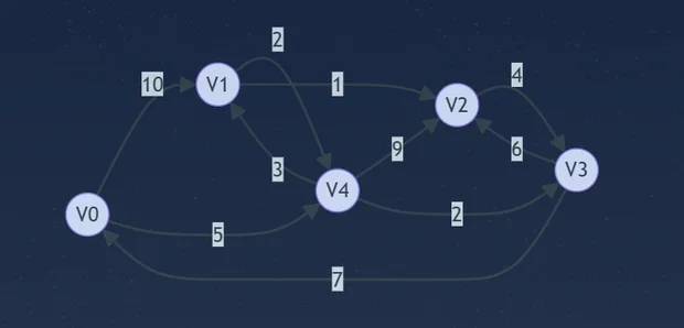 • dist 数组:记录从源点(V0)到该点(Vi)的最短路径长度