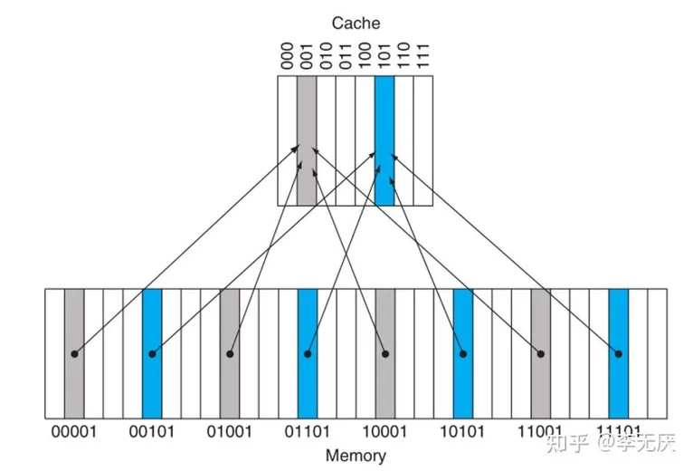 在 cache 中为每个存储中的数据字进行位置分配的最简单方式,就是基于它在存储中的地址来分配 cache 中的位置