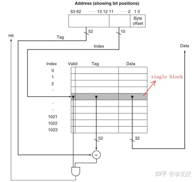 标签中只需要保存 Memory 地址的高位部分,便可以区别映射到同一个 Cache 块的数据字 -