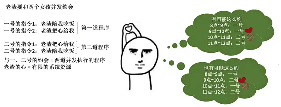 - 这里的走走停停指的是实际在并发的过程中,若是有互斥型的资源两个进程都想要使用,那么其中一个没有获得资源的进程就需要阻塞等待,所以说这个异步并不是能够像同步一样不断地向下执行。