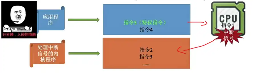 - 若是不划分的很细,那么就只有非特权指令和特权指令,这里拿第二类虚拟机管理程序举例,那么对于虚拟机中的操作系统若是想要发起系统调用,此时虚拟机管理程序则需要将其截获并且去判断该特权指令是否合法,若是合法还需要由其来进行模拟,再发给宿主机最终模拟出特权指令执行的效果。