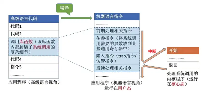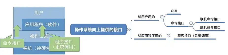 程序接口:可以在程序中通过使用系统调用的方式来使用程序接口,普通用户不能够直接使用程序接口,只能够通过程序代码间接使用。