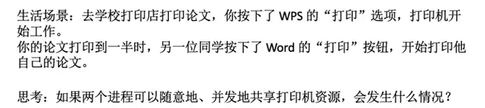 - 另一个例子:一遍打游戏与听音乐,对于一个扬声器可能会出现两个声音,也是一个同时共享示例。