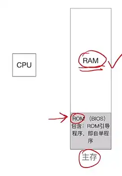 - CPU 一通电,此时就会去主存当中固定的位置找到这个 ROM 引导程序并且执行其中程序一条一条往后执行。
