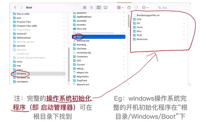 - 启动管理器:通常存放在 C 盘中的对应的根目录里某个位置。