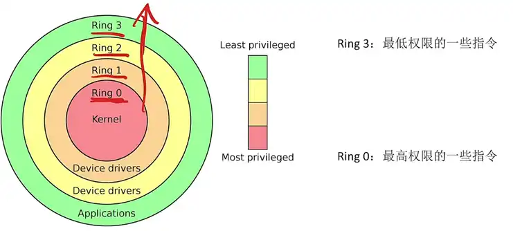 上面所说的 Ring 0 的含义:最近几年的 CPU 特权级别会被更多层次的划分,最高级则是零级,之后越往上权限越低。